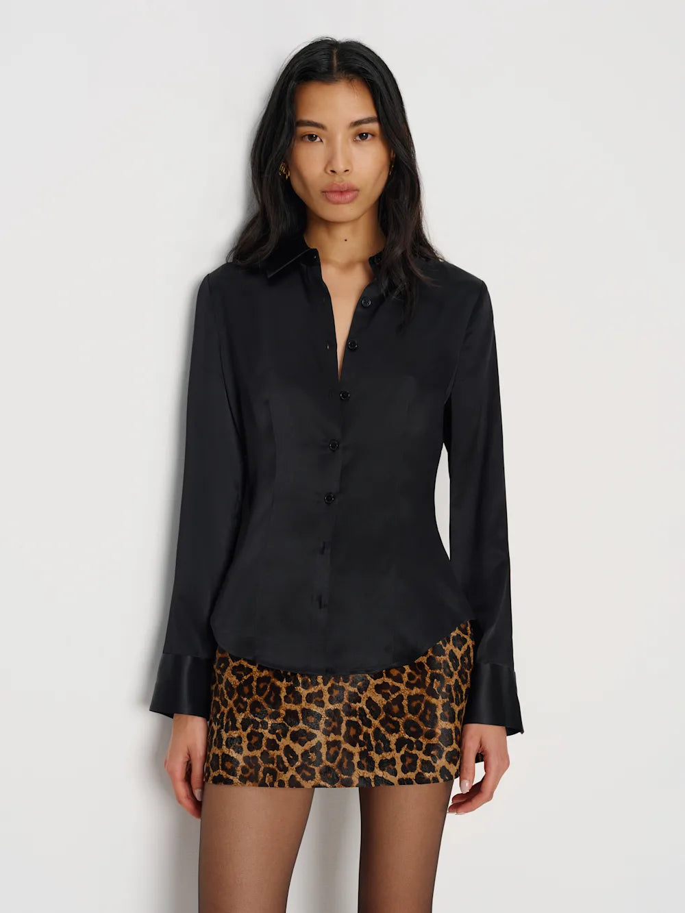 Raya Fitted Black Silk Shirt