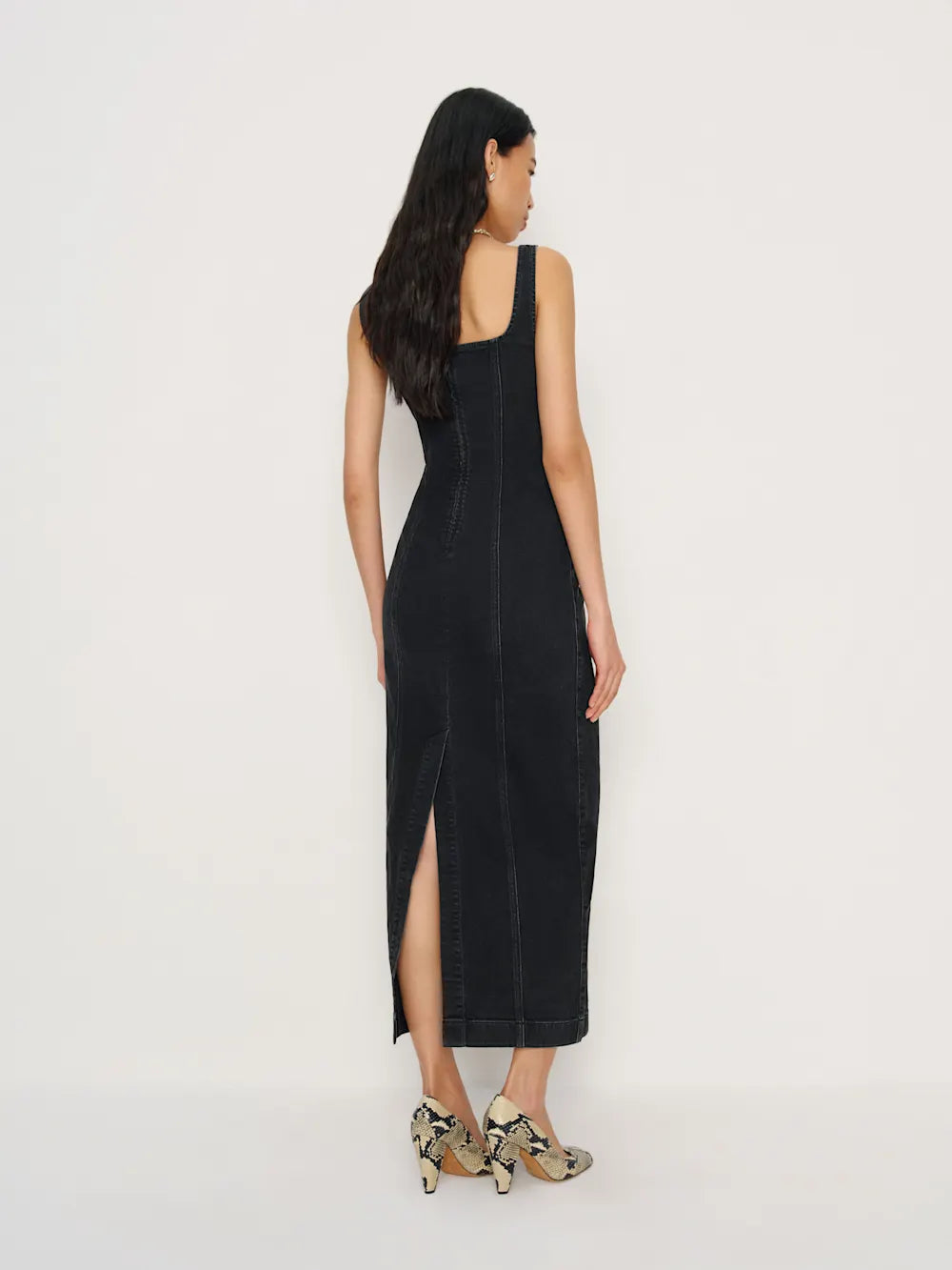 Who, me. The Super Stretch Denim Midi Dress is a romper with a square neckline. If it's not in your closet already, it should be.